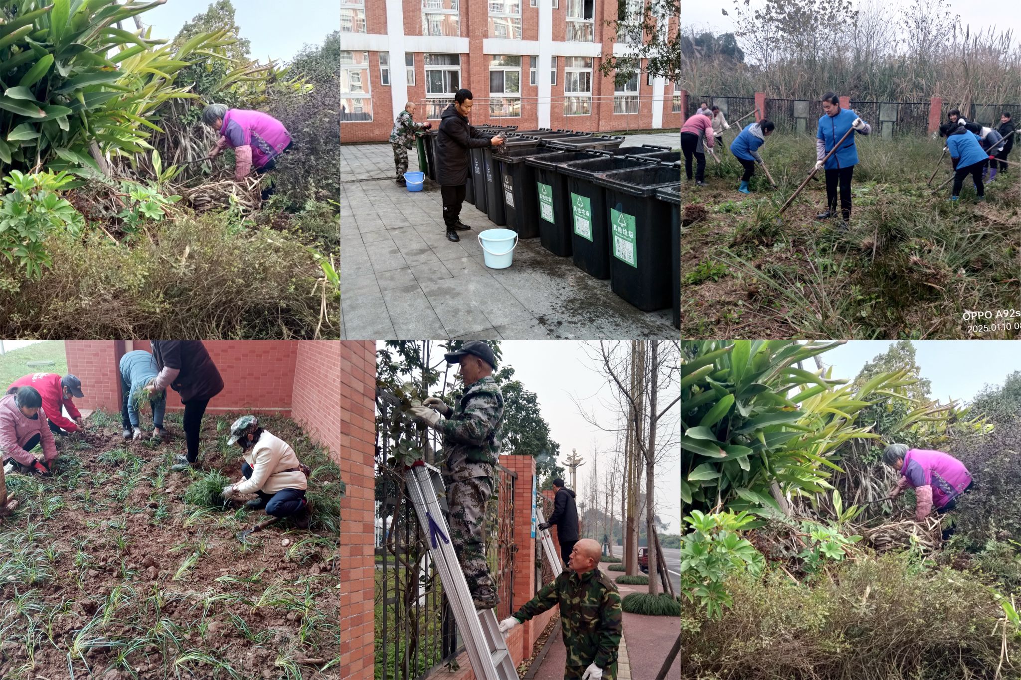 组织对花园、空地进行了清除杂草、移木剪枝、浇水施肥、养护绿地等,为师生打造优美的工作生活环境。