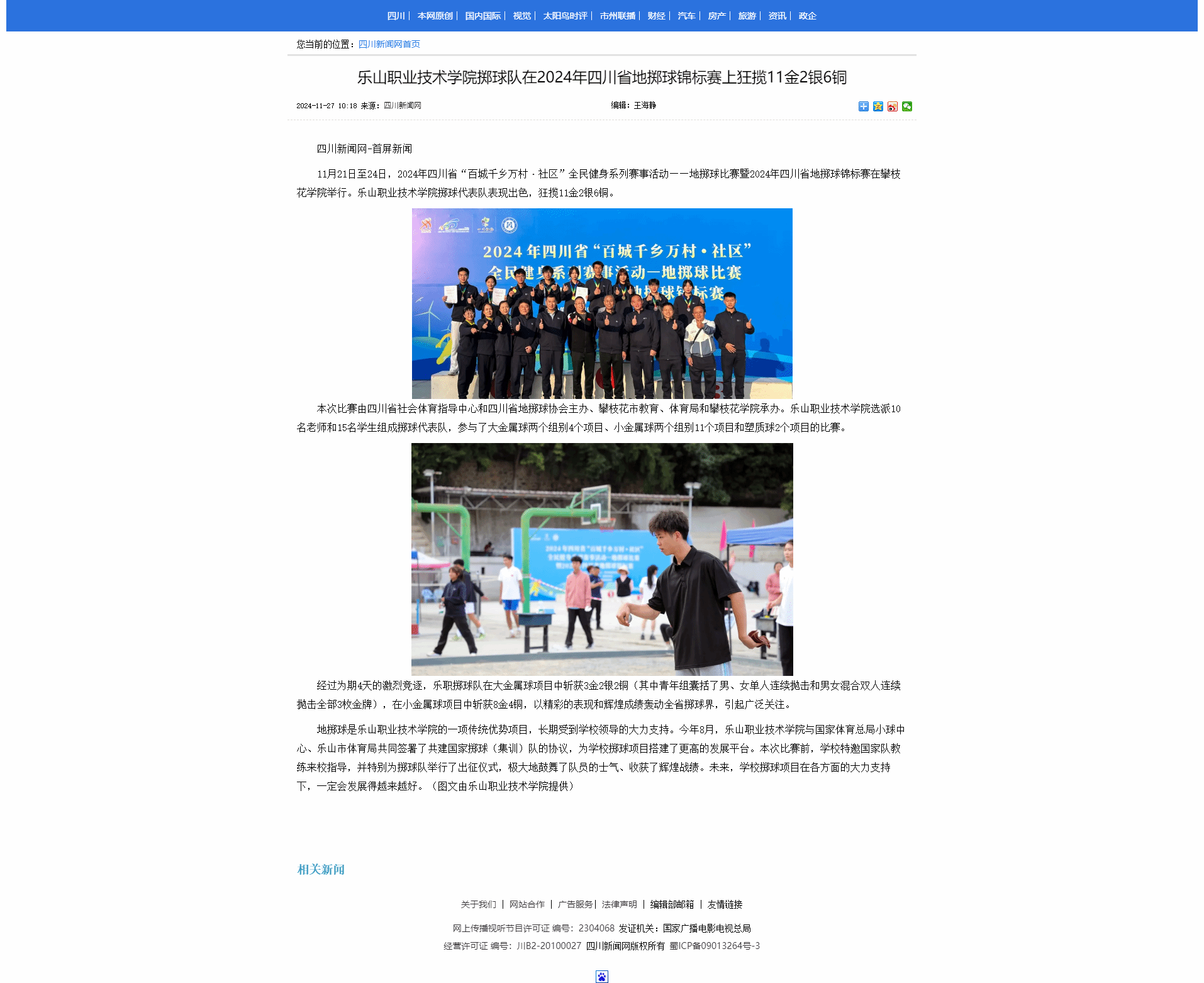 四川新闻网:乐山职业技术学院掷球队在2024年四川省地掷球锦标赛上狂揽11金2银6铜-尊龙凯时人生就是搏