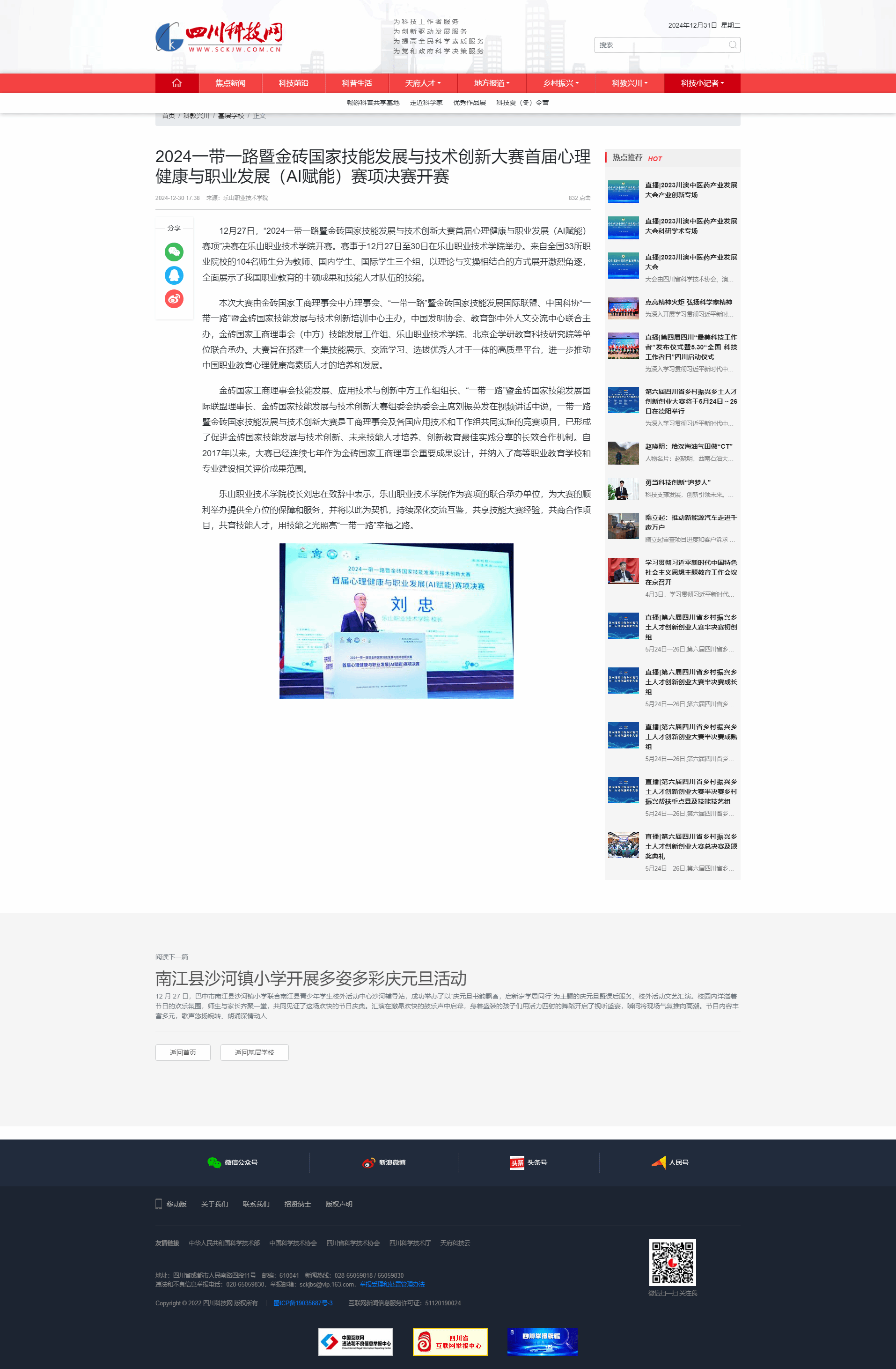 四川科技网:2024“一带一路”暨金砖国家技能发展与技术创新大赛首届心理健康与职业发展(ai赋能)赛项决赛开赛-尊龙凯时人生就是搏
