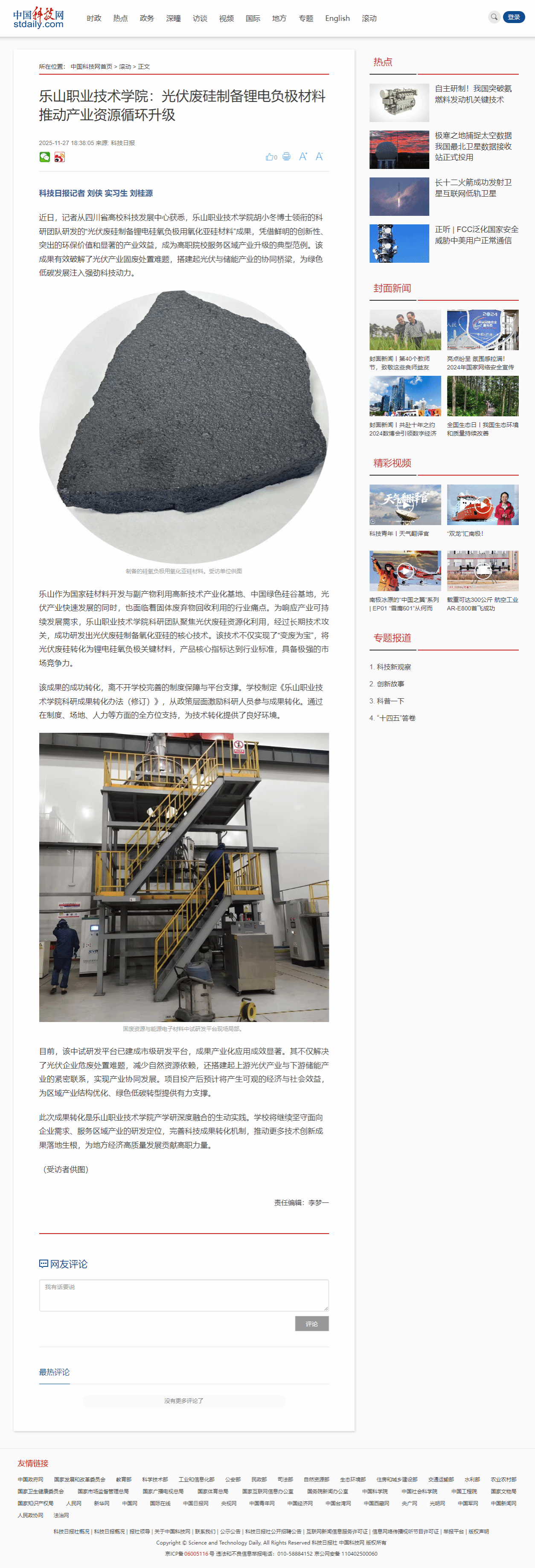 中国科技网:乐山职业技术学院——光伏废硅制备锂电负极材料 推动产业资源循环升级-尊龙凯时人生就是搏