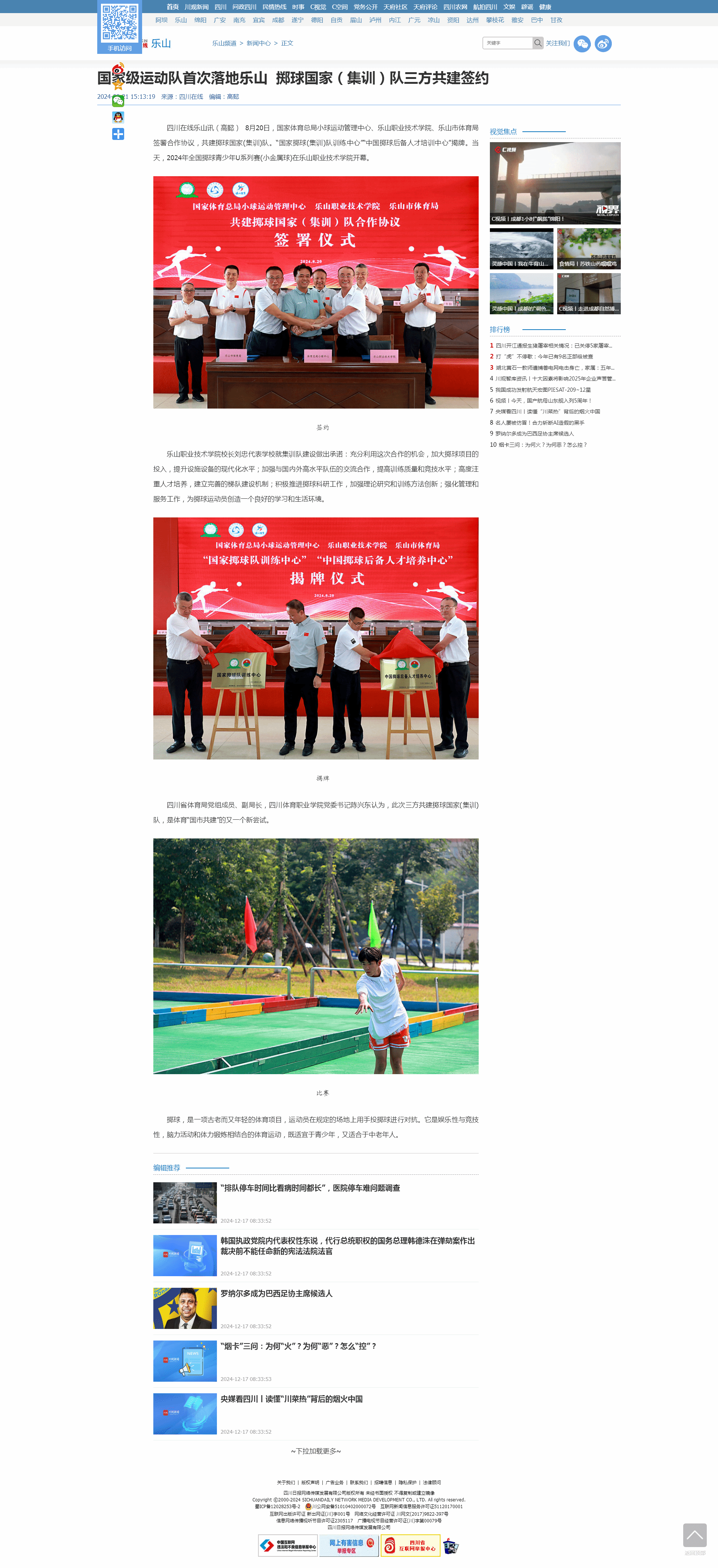 四川电视台:三方共建 掷球国家(集训)队落户乐山