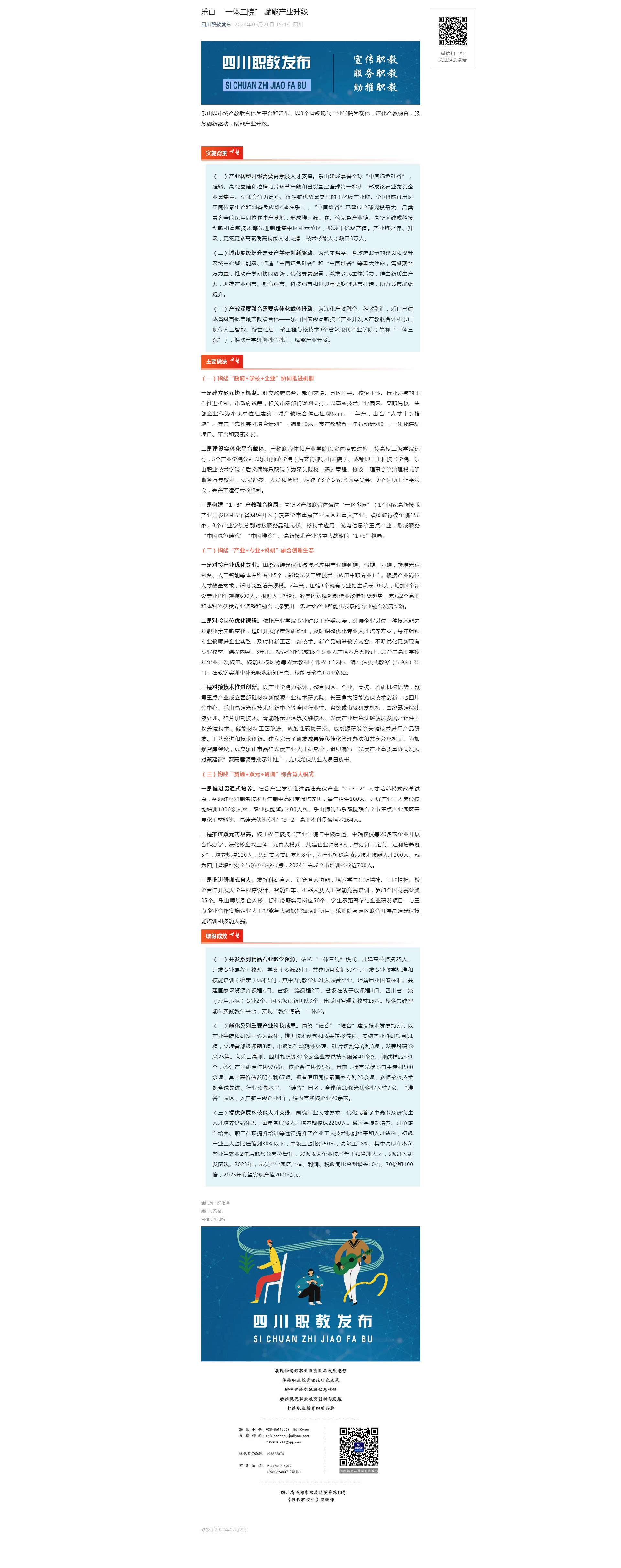 四川职教发布:乐山 “一体三院” 赋能产业升级-尊龙凯时人生就是搏