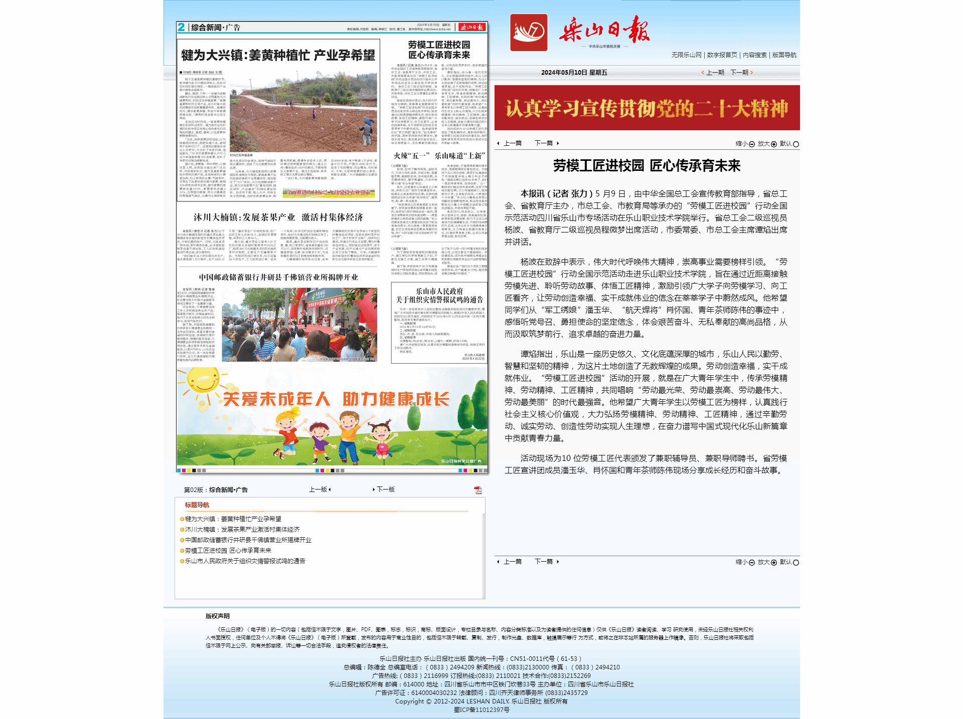 《乐山日报》劳模工匠进校园 匠心传承育未来-尊龙凯时人生就是搏