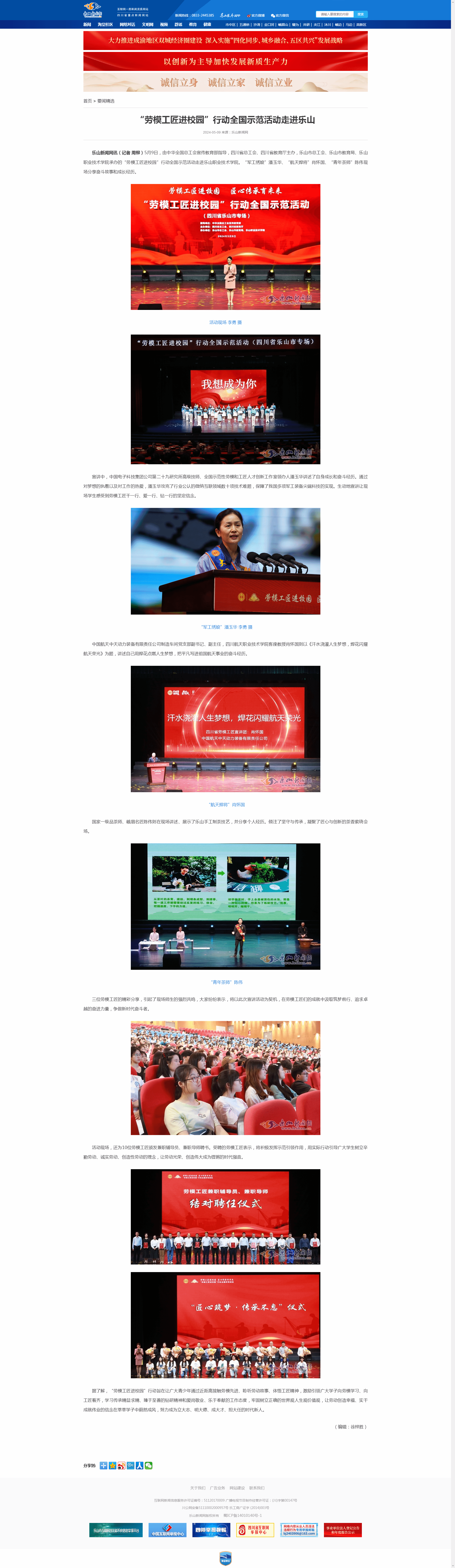 《乐山日报》劳模工匠进校园 匠心传承育未来