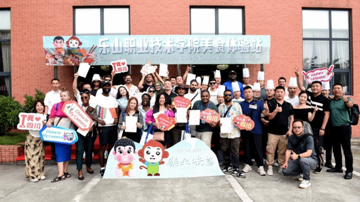 2024年7月6日,中国公共外交协会在中国国际新闻交流中心项目下首次开设的外国网红训练营正式开营。7月7日,训练营来自全球25个国家的30名网络达人来到乐山职业技术学院,参加在学术交流中心举办的“乐山味道——乐山职业技术学院体验站”活动,共同探索体验中华美食文化中的璀璨明珠——川菜烹饪艺术。此次活动,不仅加深了国际友人对中国传统文化的理解,也通过网络平台的传播力量,将乐山这座美食之城的独特魅力推向了世界舞台。