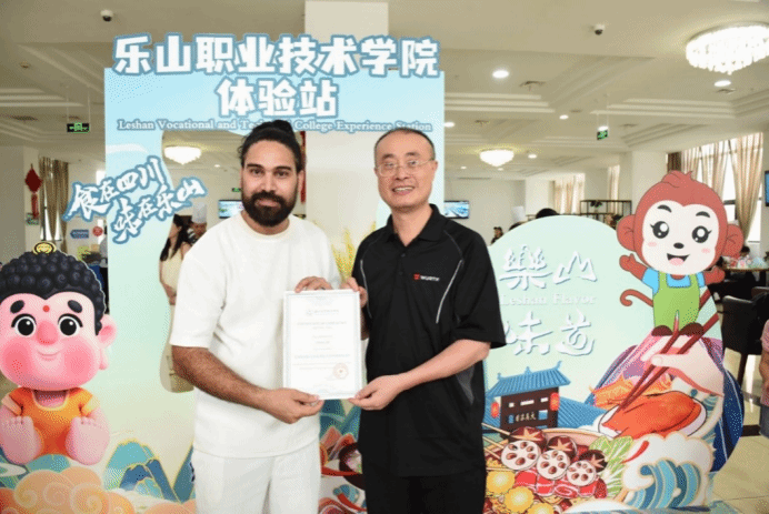 活动尾声,乐山职业技术学院校长刘忠先生亲自为每一位参与体验的网红颁发了“2小时体验证书”,以表彰他们在此次活动中的积极参与和精彩表现。刘忠表示:“希望通过这样的活动,能够让更多国际友人了解并爱上中国川菜,同时也为乐山职业技术学院的烹饪教学增添一种别样的国际交流形式。”