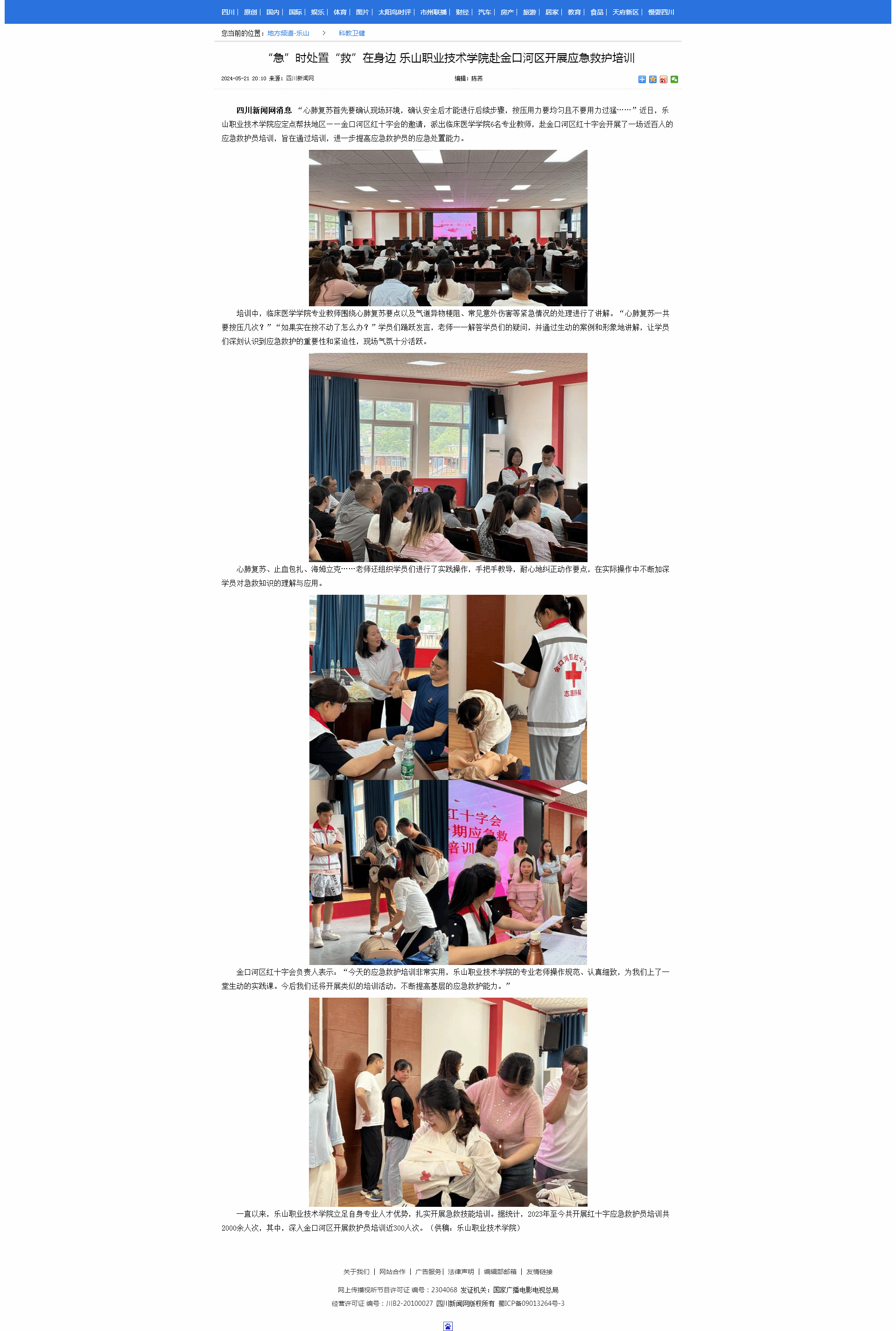 四川新闻网:“急”时处置“救”在身边 乐山职业技术学院赴金口河区开展应急救护培训-尊龙凯时人生就是搏